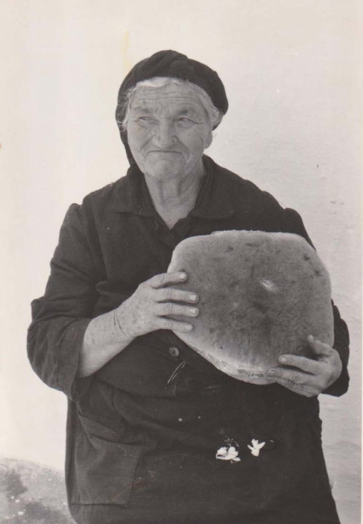 Certain textiles accompanied the agricultural tasks and the preparation of bread, such as the sporόvourga (seed-bag), the flour bags, the cloth to cover the loaves (artόpano or psomopetséta) left to rise in the special trough (pinakotί), and so on. In the old days, the grinding of the grain, the sieving of the flour, the kneading, forming, decorating and baking of the bread loaves, all took place in domestic space.